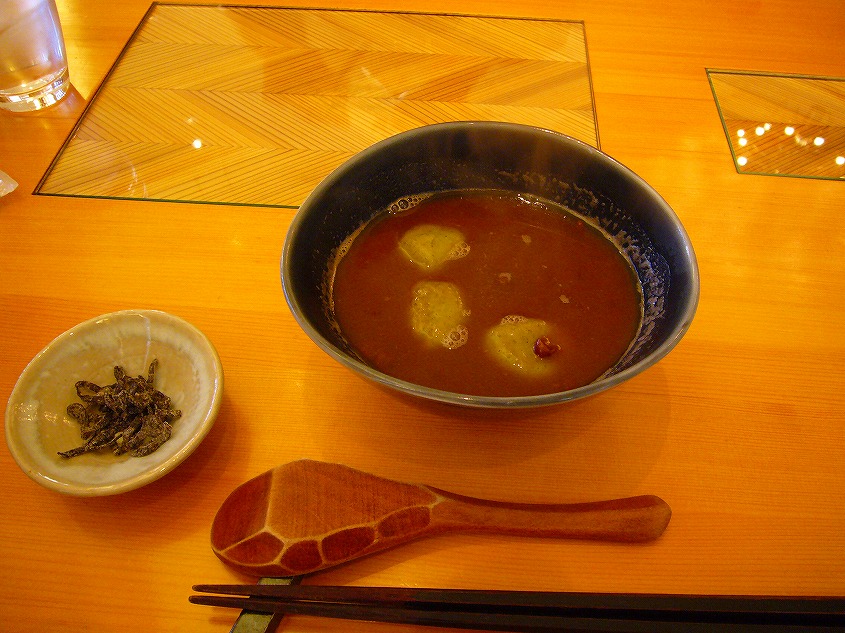 ぜんざいでレンゲがついて出てきたのは初めてです。ちょっと面白いですね。