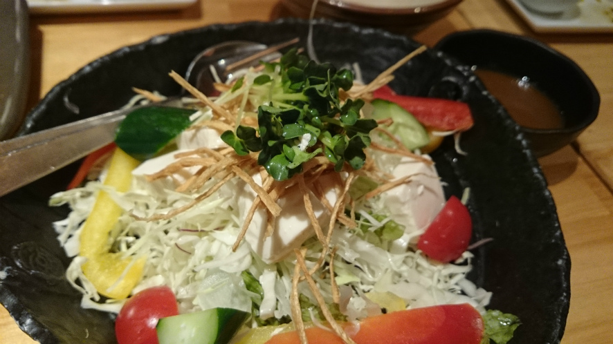 最初にとりあえず飲み物を頼んで、ちょっと談笑してからお店の人のはよ食べ物頼めオーラに負けて食べ物を注文。
