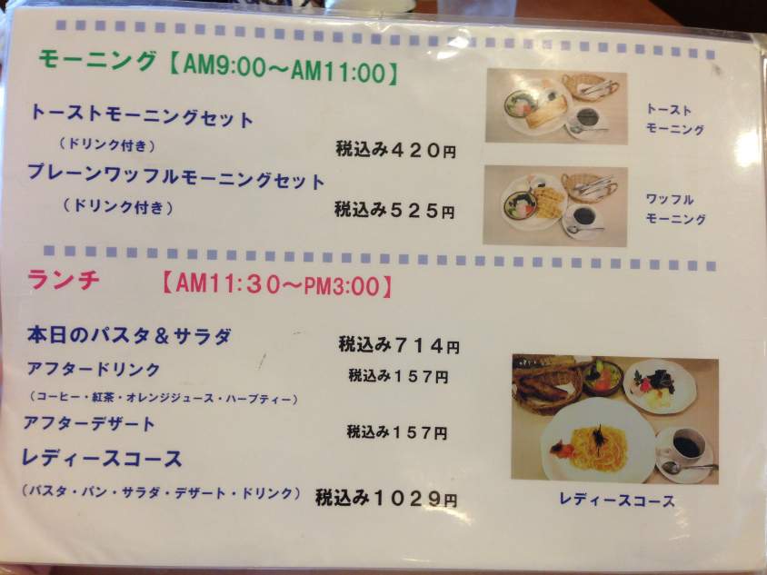 メニューは本日のパスタ&サラダかレディースコースの2種類です。