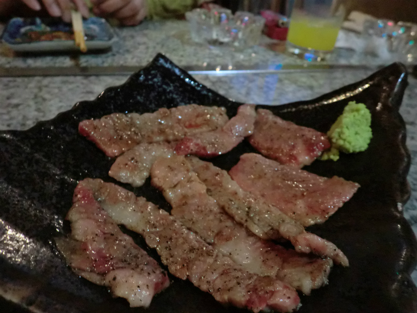 こちらのお肉、一緒にワサビが添えられています。