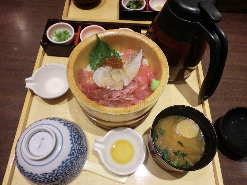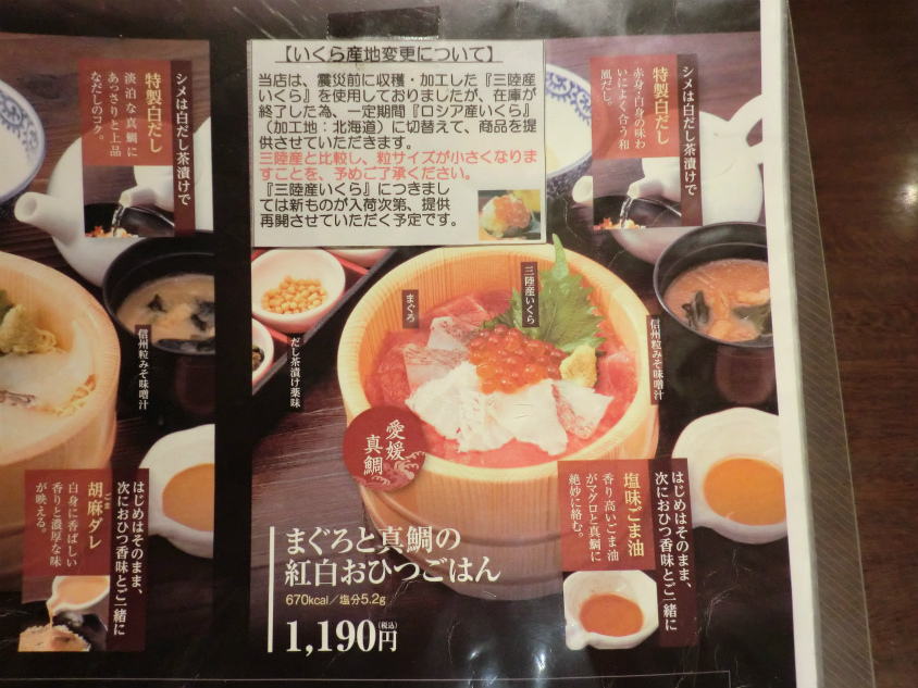 魚が食べたかったのでまぐろと真鯛の紅白おひつごはんを注文。
