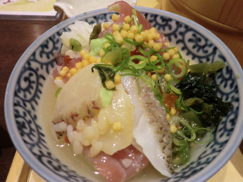 最後に、あったかい白だしを入れてお茶漬け風です。