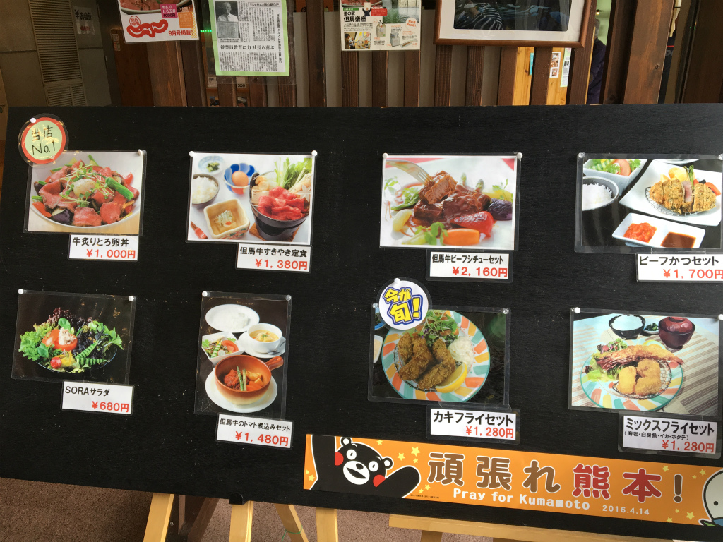 道の駅が但馬楽座って事で但馬牛が全面にプッシュされてる雰囲気で但馬牛のハンバーグとかいろいろメニューがあります。