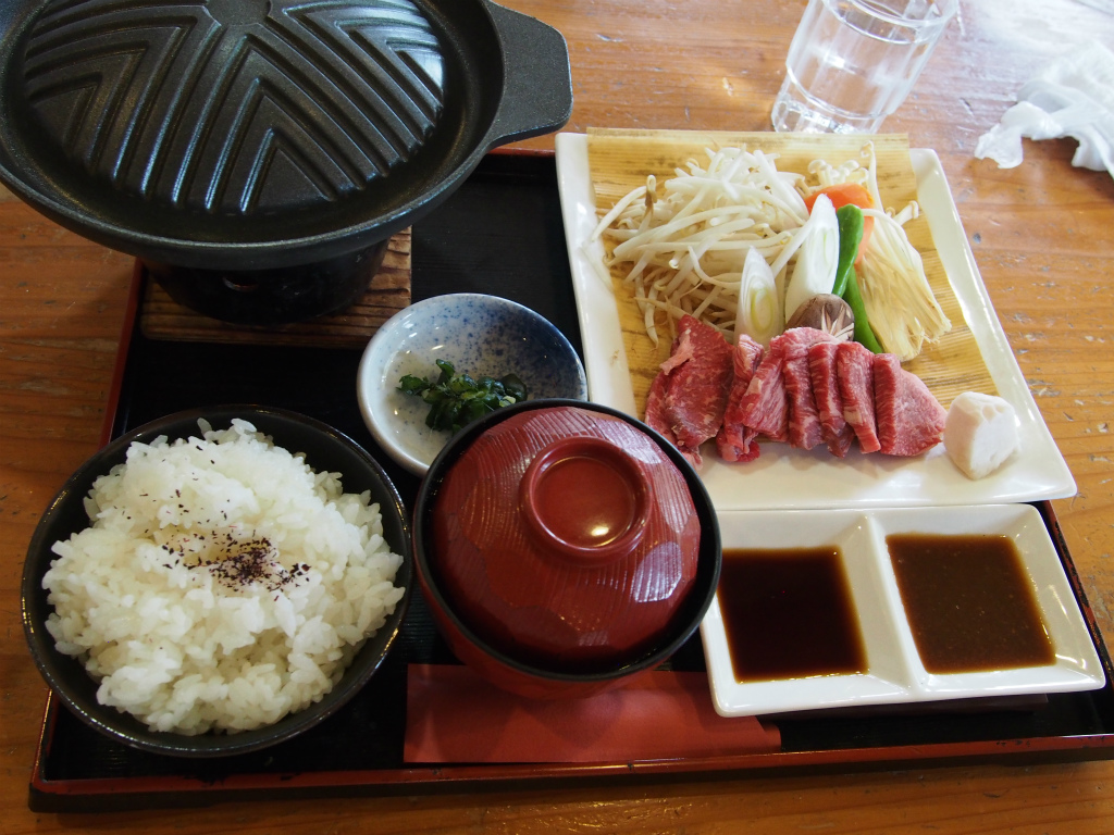 後から入ってきた老夫婦が同じもの食べてたけどそっちの肉のほうが霜降りが多くて美味そうに見えました。
