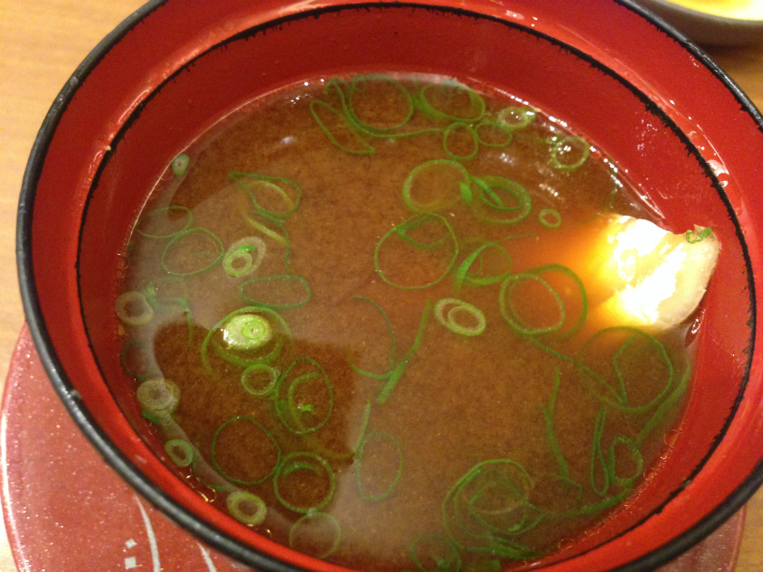 サイドで頼んだ赤だしが出てきました。ちょっと味が薄めでしょうか。