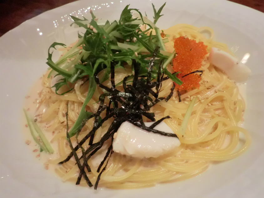 頼んだのは明太子とイカのクリームソース(1050円?)です。