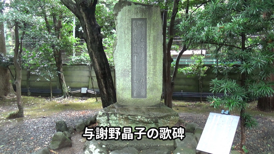 その木のそばには与謝野晶子の歌碑がありました。僕の地元堺出身の有名な歌人ですね。