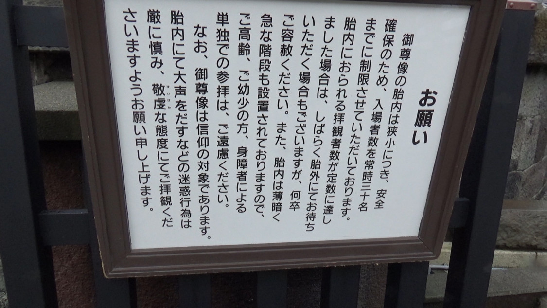 胎内の構造の説明板がありました。修理とかで結構手が入れられてるみたいです。