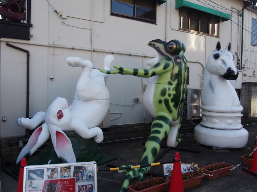 たまにテレビなどで紹介されている発泡スチールで作った巨大なオブジェが駐車場横のスペースに無造作に展示されていました。なんかちょっと怖いですね(笑)