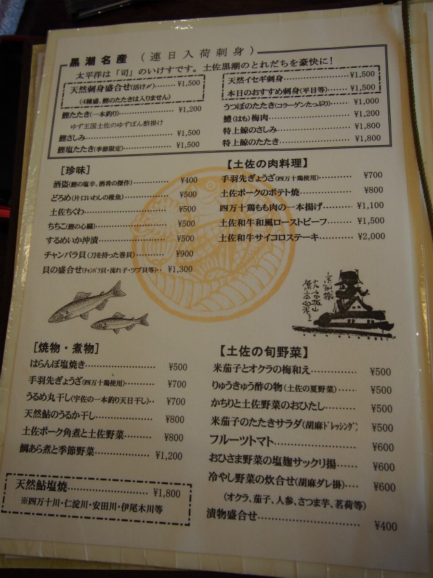 メニューはこんな感じ。カツオに限らず魚介類が多いですかね。