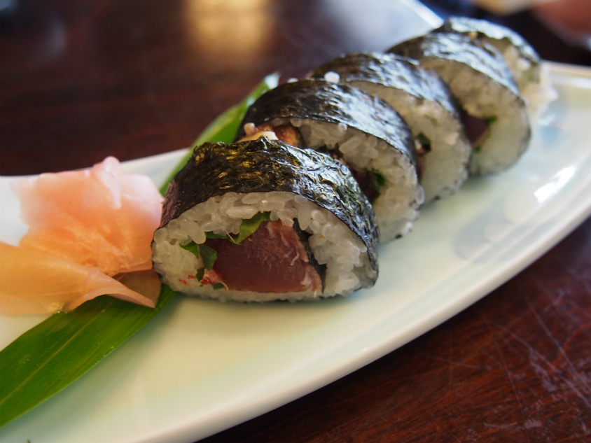 続いてはお寿司から土佐巻きを注文。中のネタはカツオのたたきです。