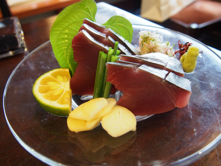 こちらもたたき以上に分厚く切ってありました。薬味を添えて醤油で食べると旨い。