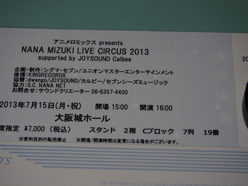 今年も待ちに待った水樹奈々のライブのチケットが到着しました。