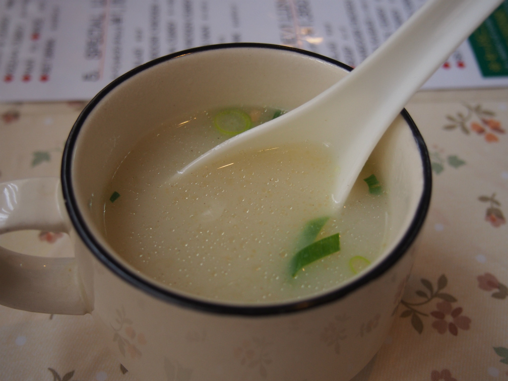 注文を済ませたら最初にスープが出された。この日はめっちゃ寒かったからありがたい。