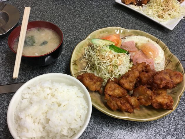 安立商店街近くのひかり食堂でボリューミーな唐揚げ定食ランチ