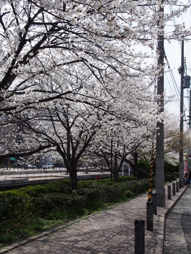 途中の川沿いで桜が綺麗に咲いていました。
