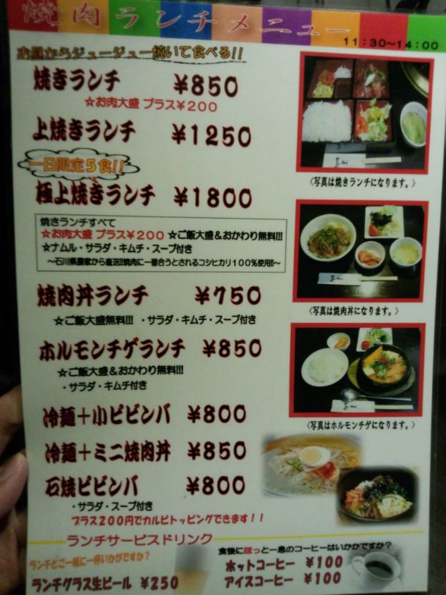 職場近くの泰山と言う焼肉屋にランチに行ってきました。