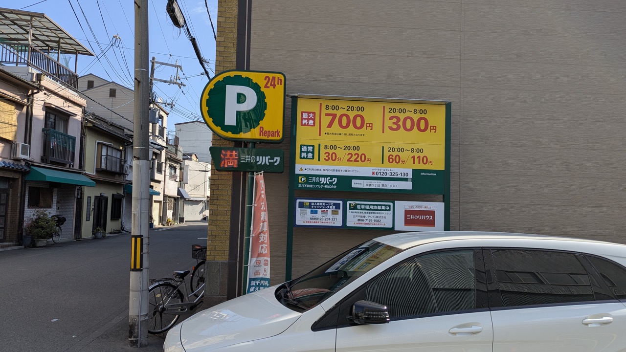 みのや専用の駐車場はないので、車で行く場合は近隣のコインパーキングに停めるのが正解。