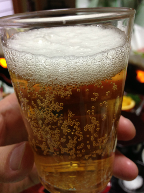 年に数回しかない家族三人での乾杯です。ビール旨い。
