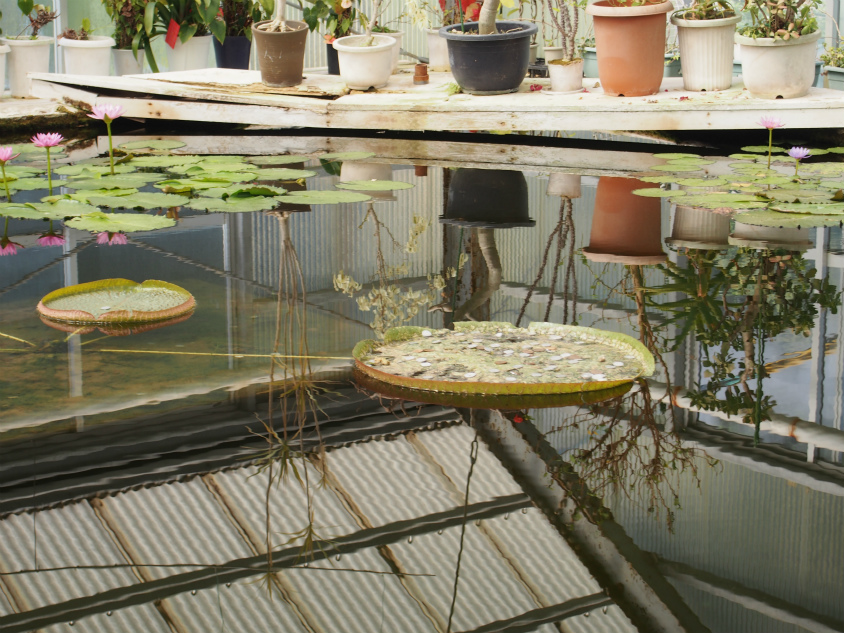 帰りの順路で温室があり、大鬼蓮という世界最大の種類の蓮の花がありました。