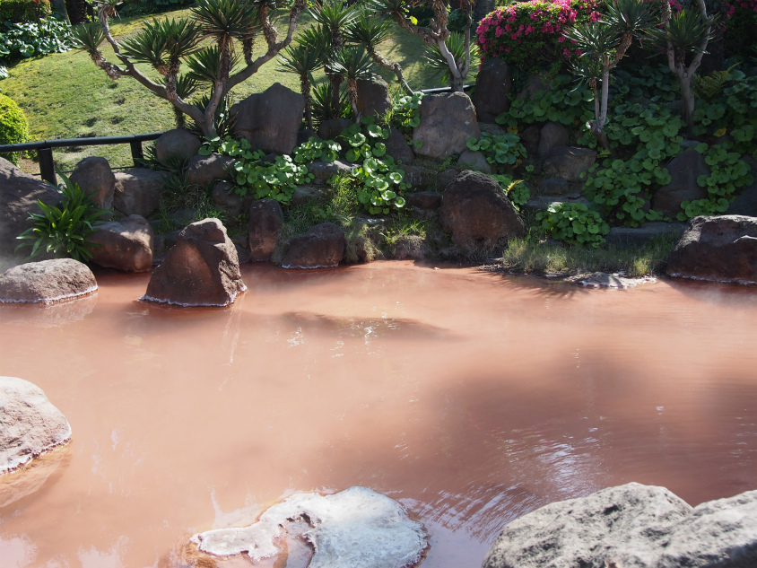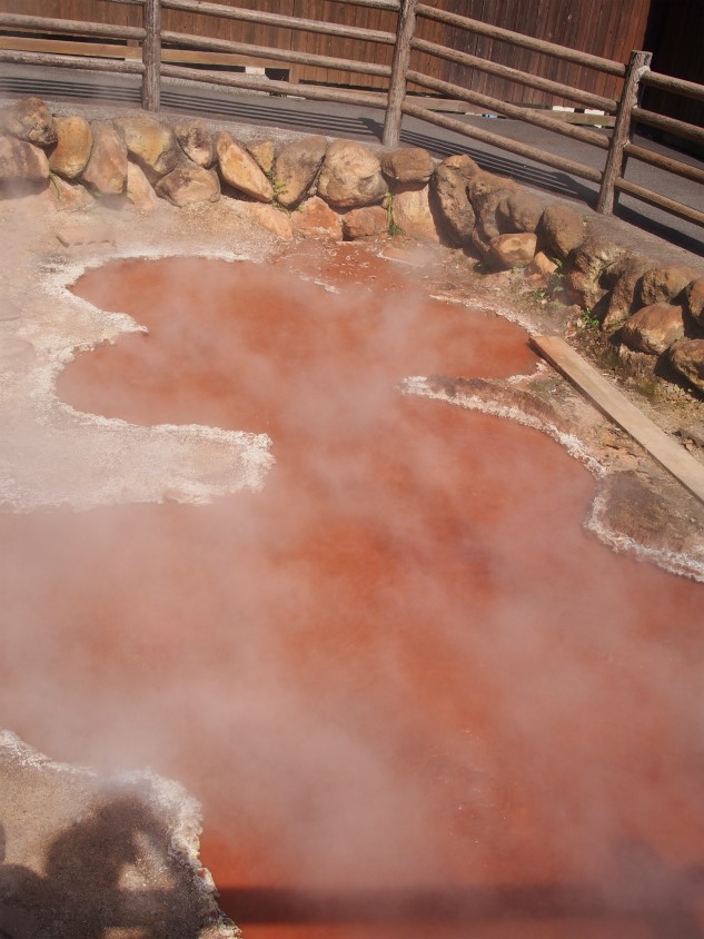 近づいて見てみると、血の池という割にはオレンジがかっています。