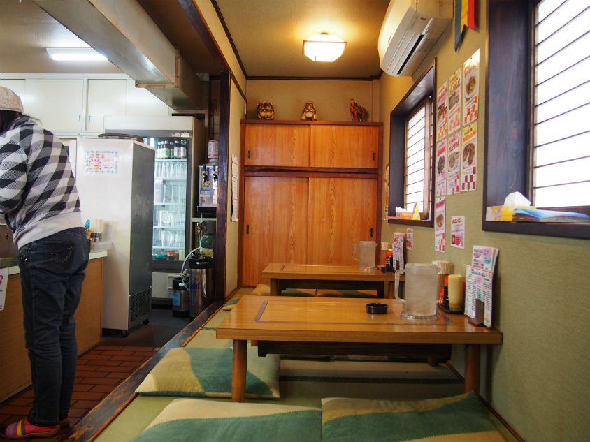 店内は入口正面に鉄板を見れるカウンターがあり、右手に座敷が3卓になっています。