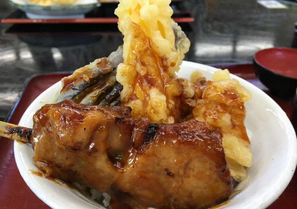 載ってる具材を見たら分かるって感じの予想通りの味です。これやったら正直天丼と焼鳥を別々で食べても良いんちゃうかなと思います。