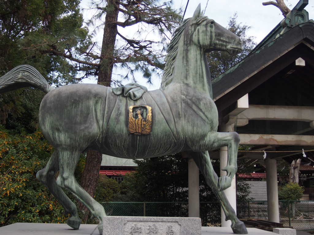 本殿に向かうと馬の銅像を発見。なんか泣いてるみたいでちょっと怖いですね。