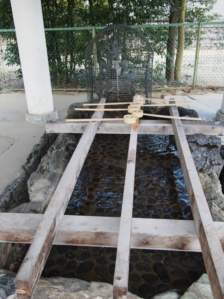 馬の横には手水舎がありました。ここのは網とかしてありませんでした。この辺りは広くなっていて車で来た人が駐車してました。