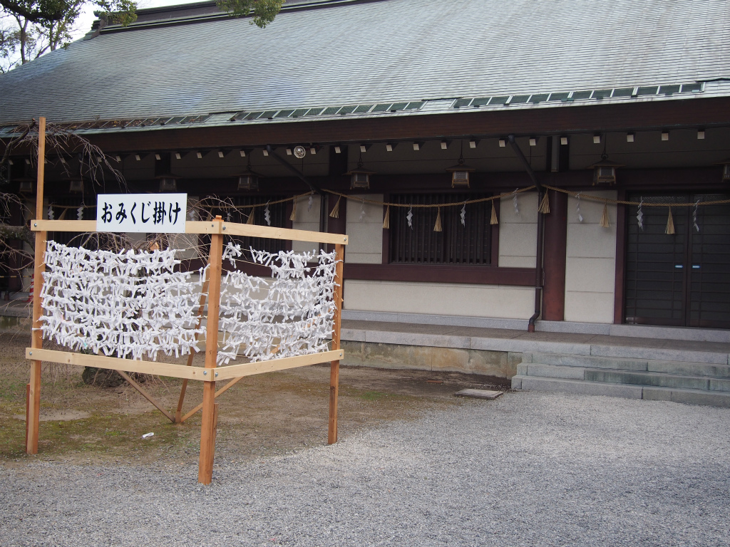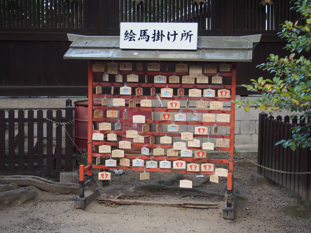 中に入って右手におみくじ掛けとさらに奥に絵馬掛けがあります。
