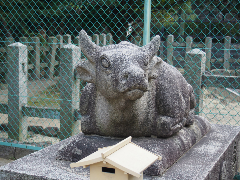 もっと奥に進んでいくとまた別の社があってその前にこんな牛の像がありました。