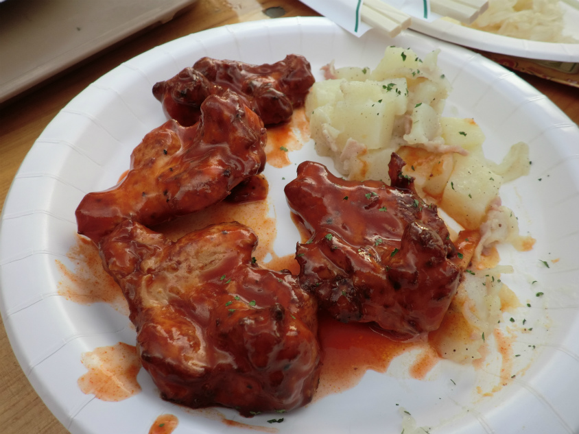 バッファローウィングという鶏肉料理です。バッファロー肉ではありません。