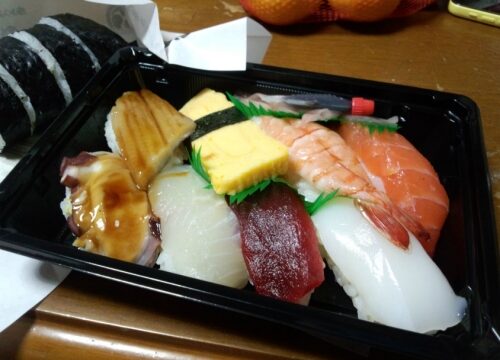 2013年11月19日 黒っぽいネコ 以前散歩の帰りに寄った雷寿司でまた寿司を買ってみました。 今回はにぎりと巻きずしにしました。 前回はにぎりのシャリが何故か柔らかくてちょっと残念だったのですが、今回は大丈夫でした …