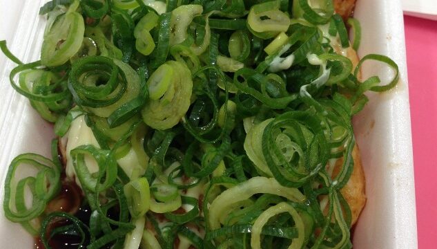食べ歩きさっぱりねぎポン酢でたこ焼きをがっつく