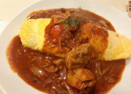 食べ歩き大きめの鶏肉が入ったオムライス