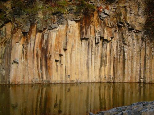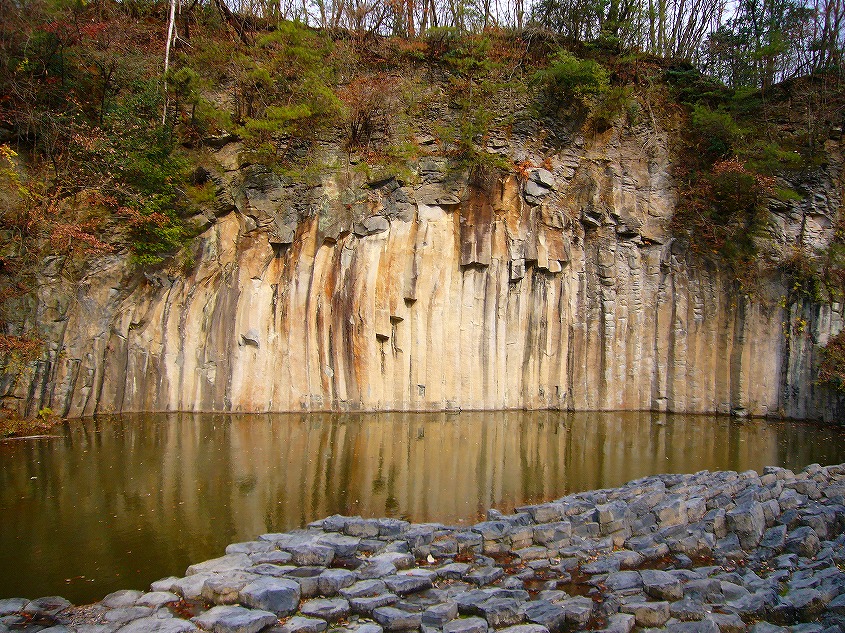 この角度だと水面に映る玄武岩と実際の玄武岩できれいですね。