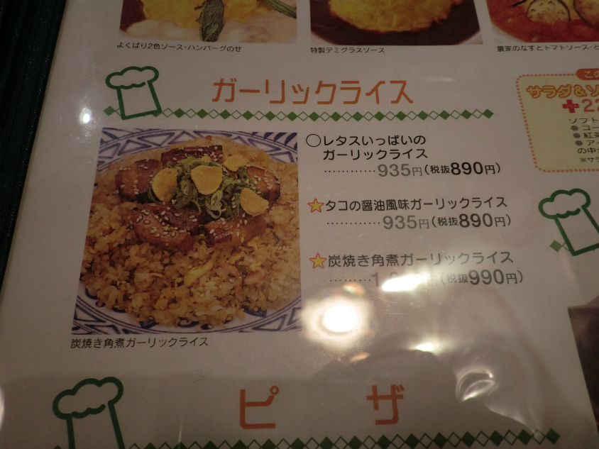 メニューを見ると最初に悩んだのはパスタにするか、ガーリックライスにするか。