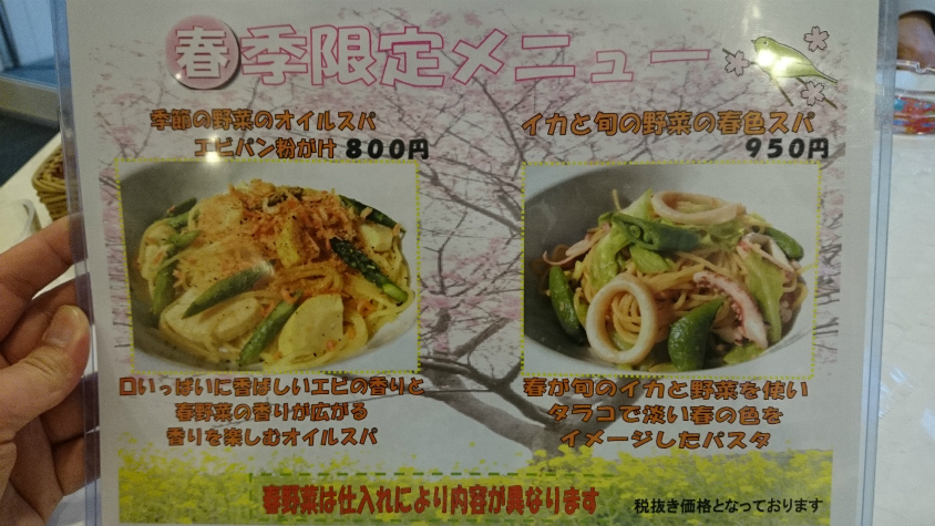 商品名が長すぎてめんどくさいので店員さんにこれ!と指差し注文した時に春色スパですね~と返され、そこで初めてパスタの名称を認識。