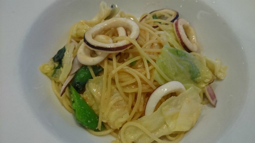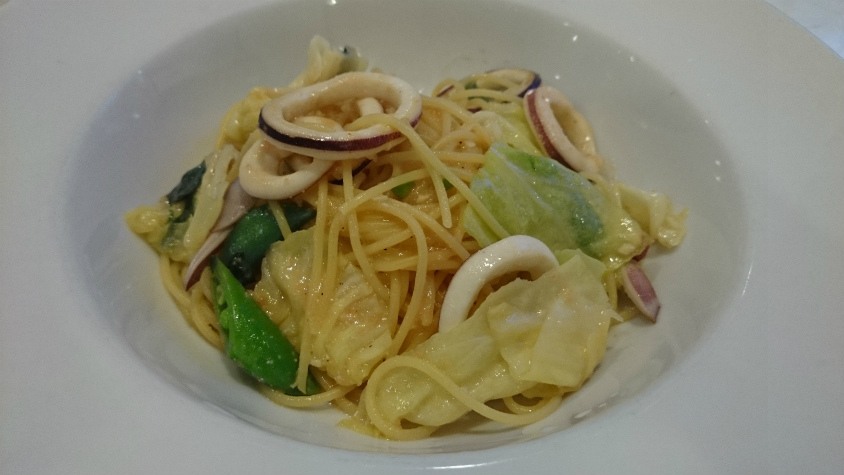 パスタの名前と説明文を勘違いしていたので、「春が旬のイカと野菜を使いタラコで淡い春の色をイメージしたパスタ」という説明がパスタの名称だと思ってましたw
