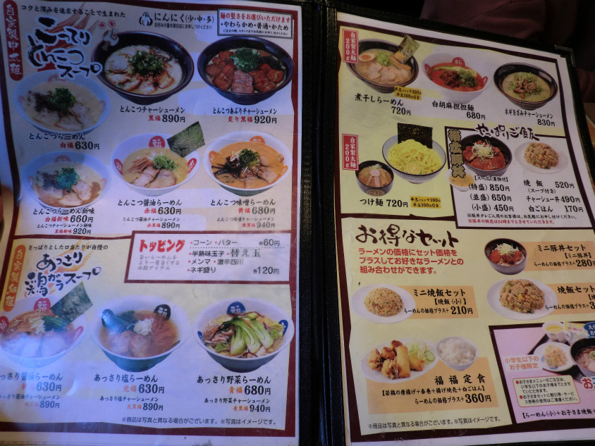 ラーメンはとんこつベースでいろいろタイプがあったり