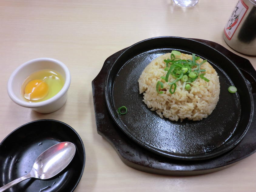 これは生卵が一緒に出てきたのでそれを鉄板に流し込み