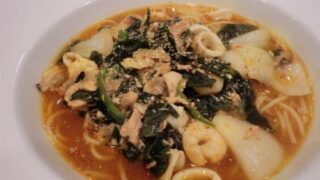 それから野菜。味が濃すぎる。炒めることにより油が増えてスープがギトギトになってます。
