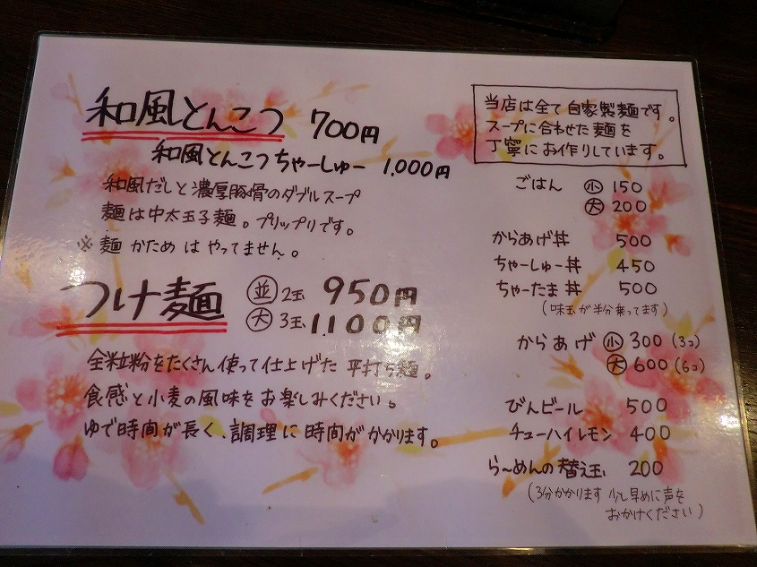 頼むものは最初からつけ麺(並)と決めていましたが、一応メニューを見てみました。