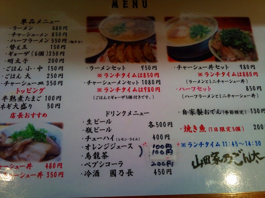 さっそくメニューを見てみました。スープは豚骨のみみたいです。