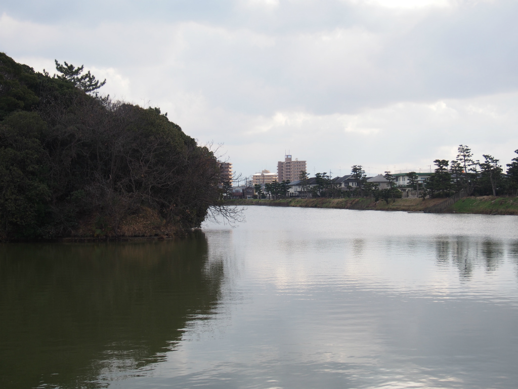 今回はまず最初に正面からじゃなくて裏側(大仙公園側)から古墳の横を通ってみました。そこから見える景色がこんな感じです。