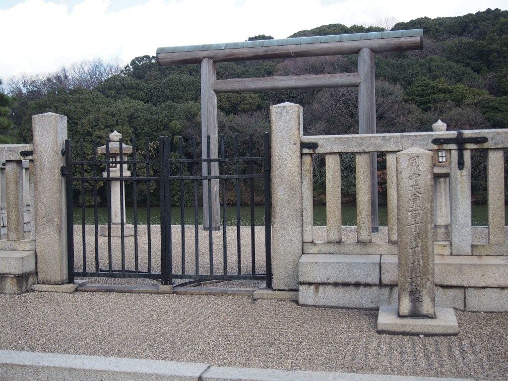 大仙公園を挟んで仁徳天皇陵の反対側にある古墳です。古墳の西側では柵に張り付いて望遠レンズで野鳥を撮影してるおじさんがすごくたくさん居ます。