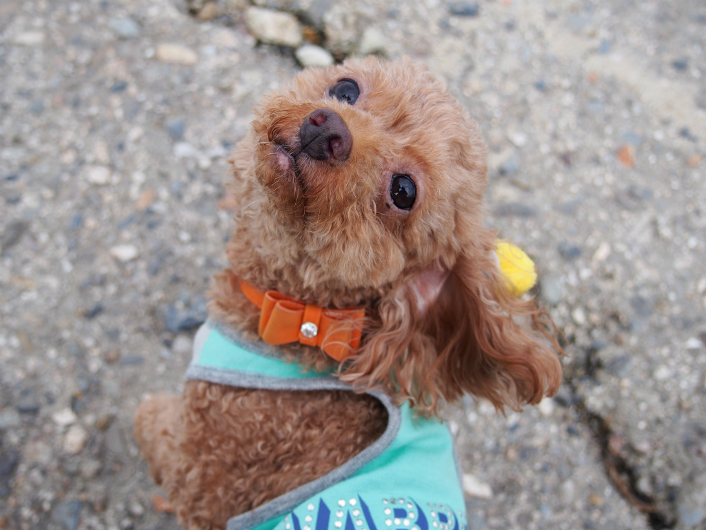 とりあえず振り返りながら見上げるマオがめっちゃ可愛いです。流石トイプードルNo.1の可愛さ(自称)です。