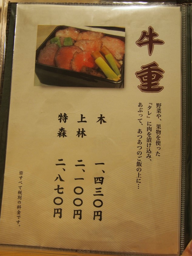 メニューを見てみるとうな重だけでなく牛重と言う肉の丼ぶりもありました。
