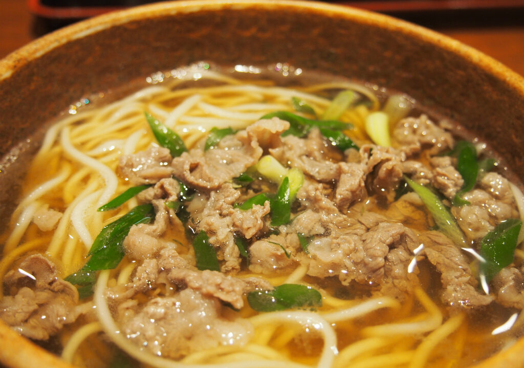 あまり大した待ち時間もなく肉そばの登場です。いつもどおり最初に出汁を飲んでみると結構しっかりした味で美味しい。