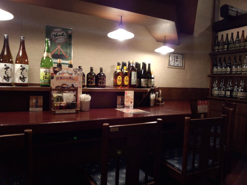 店内には焼酎のキープと思われるボトルがいっぱいありました。